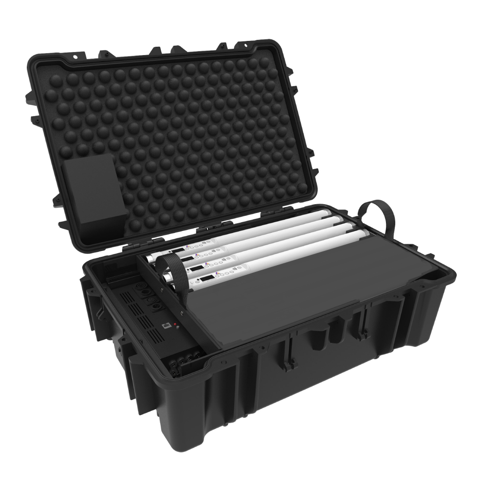 The Helios Tube is the compact sibling of the Titan Tube, delivering the same full RGB and tunable white light in a shorter, lightweight body. Ideal for tight spaces and mobile setups. The 4-kit includes four tubes with accessories in a soft transport bag.