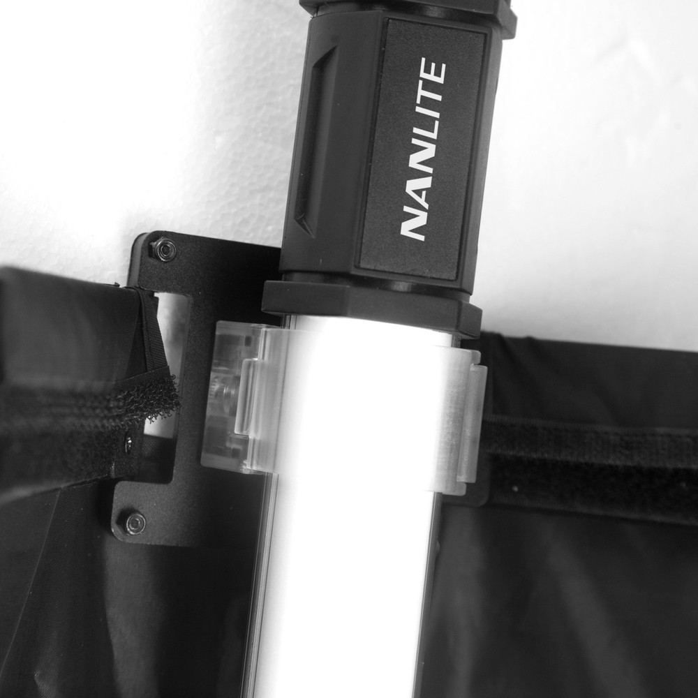 The Nanlite Fabric Barndoors and Grid for PavoTube 30C LED Tubes mounts via T12 diameter clips to minimize light spill and add directionality. Control Light Spill Equip your PavoTube 30C LED Tube with the adjustable fabric bar doors and modify its beam angle from 180° down to less than 5° Add Directionality Add the included 45° Fabric Grid to selectively light subjects without losing the PavoTube's diffuse light quality. Standard T12 Diameter Mount While created for use with Nanlite PavoTube 30Cs, the PavoTube Fabric Barndoors, and Grid is compatible with other T12 tube lights approx 1.2 m in length. Light Weight Construction Made from ripstop nylon, PavoTube Fabric Barndoors and Grids fold flat and travel light.