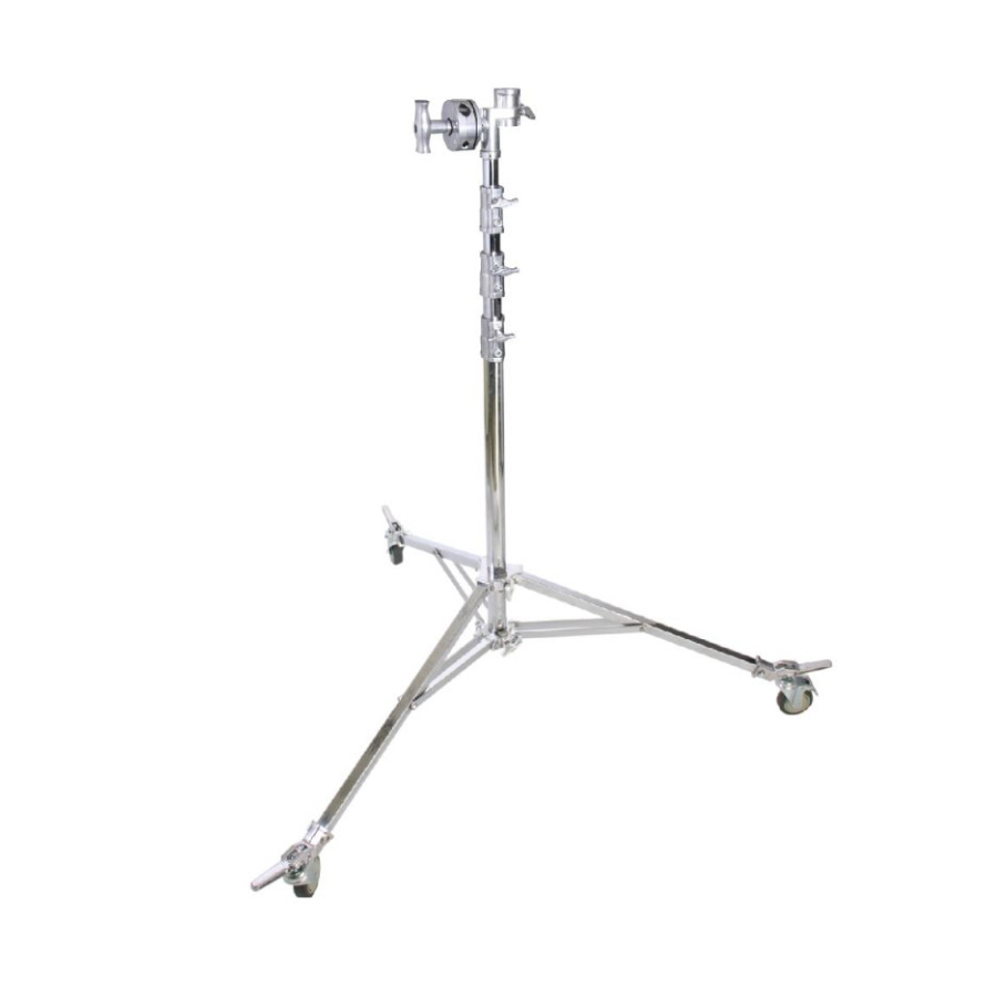 In addition, the Kupo High Overhead Roller Stand features a versatile combination head that includes a 4-1/2'' gripping head (also known as a lollipop) and a 1 1/8'' junior mount (28 mm). This combination head is equipped to handle a variety of assembly challenges.