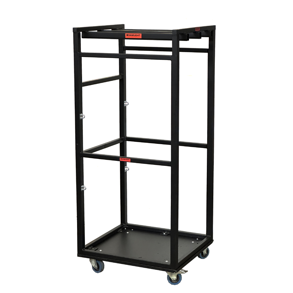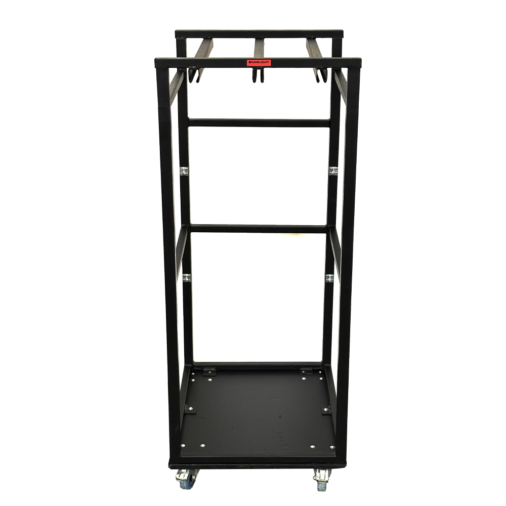 A large utility cart for transporting mediuim size stands like 126-CSU, Kupo heavy-duty baby stands, A1020 low-boys and son on. Fits around 15 stands on the rails. Recommended for the studio and for the car that has a lift.